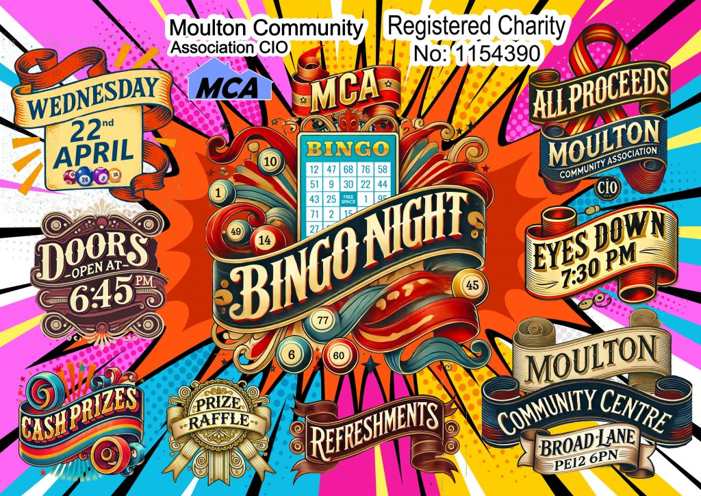Bingo nights at Moulton Community Centre are more than just gamesâtheyâre a chance to connect, unwind, and share some laughs with your neighbors, friends, and family. Hereâs what you can look forward to: