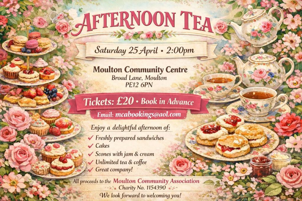 This isnât just an afternoon of indulgenceâitâs an opportunity to give back. Every ticket sold helps support the Moulton Community Association, meaning your afternoon tea comes with a warm, feel-good glow.